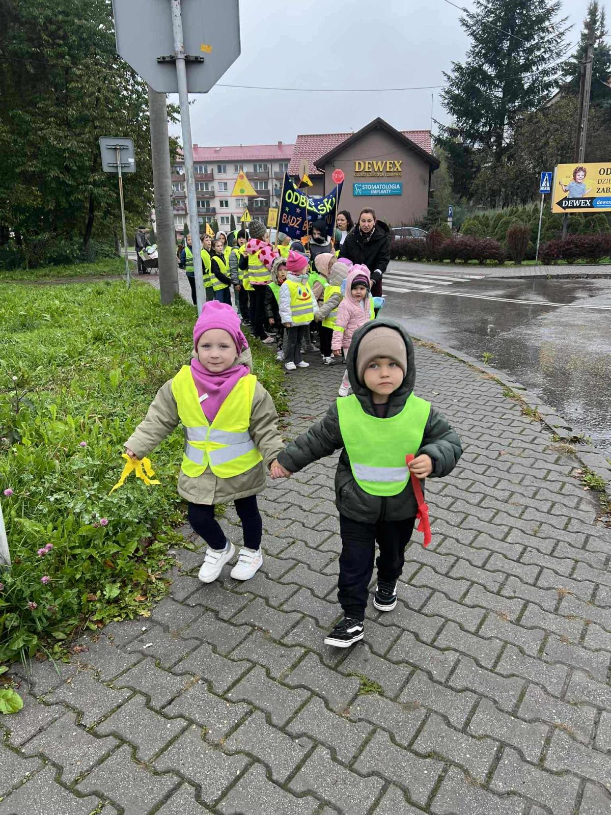 W ramach akcji „Odblaskowa Szkoła” odbył się dziś odblaskowy marsz. Dzieci ze szkoły podstawowej i przedszkola w Kalwarii Zebrzydowskiej wyruszyły w odblaskowym pochodzie ulicami miasta, promując bezpieczne zachowania na drodze. Uczestnicy marszu, ubrani w kamizelki i inne elementy odblaskowe nieśli dodatkowo transparenty, które wcześniej sami wykonali. Dzięki temu uczestnicy marszu byli doskonale widoczni. Na transparentach znajdowały się hasła, rysunki i odblaskowe dodatki, które miały przekonać i uzmysłowić jak istotne jest noszenie i używanie elementów odblaskowych, szczególnie po zmroku.