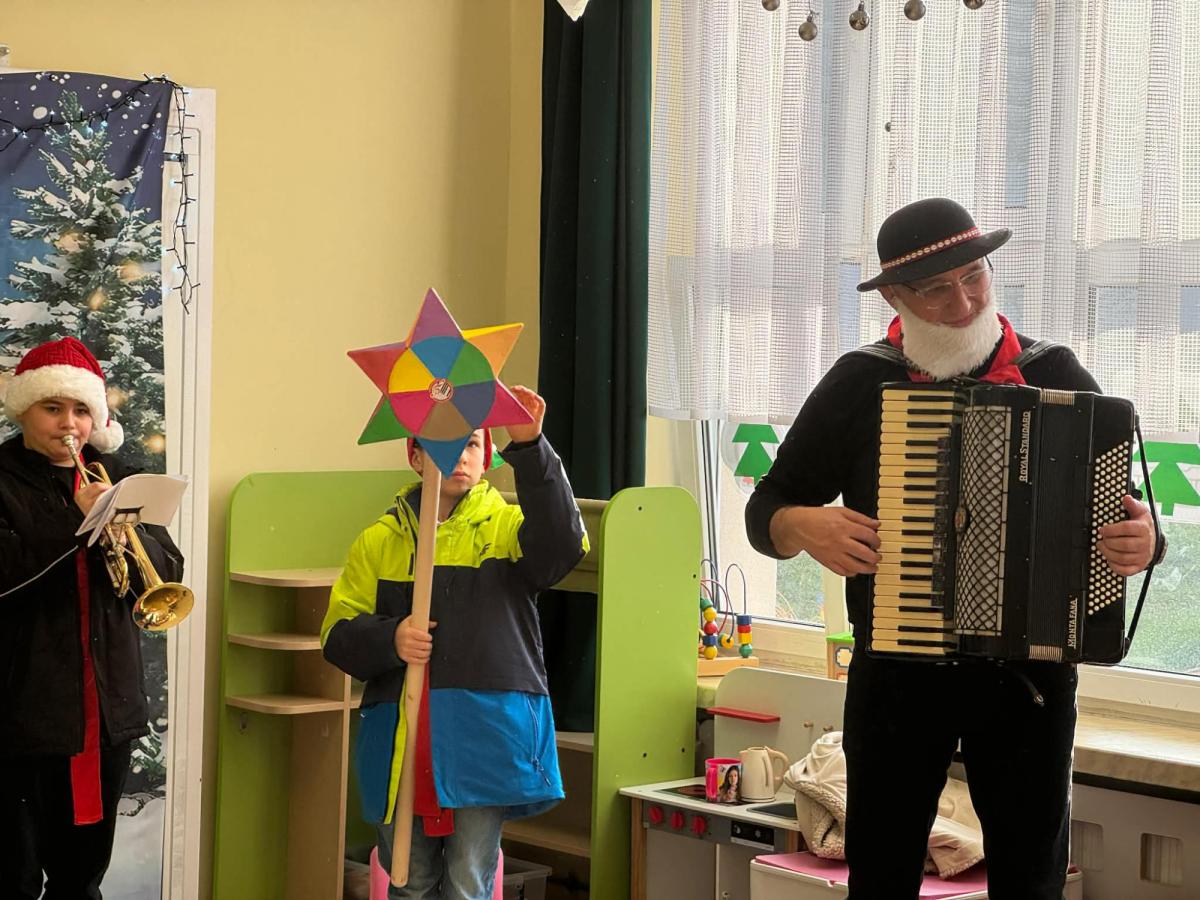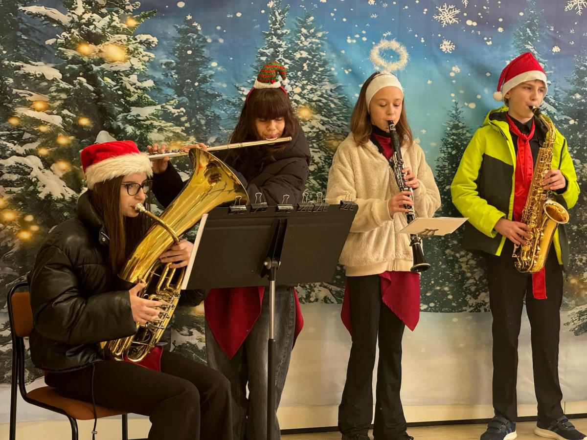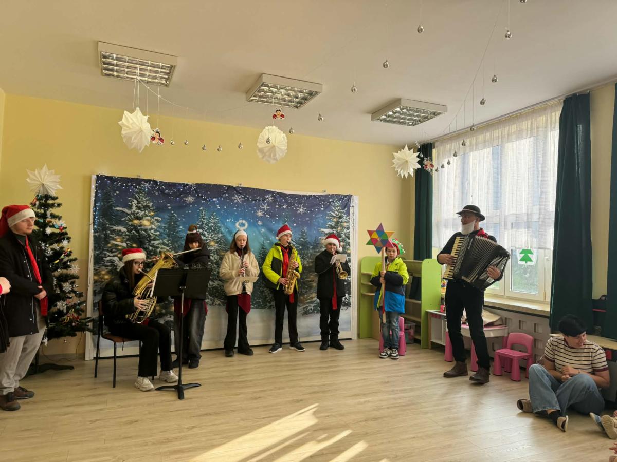 Drukuj Powrót do poprzedniej strony Kolędowanie z uczniami i p. Dyrektorem szkoły muzycznej. 12.12.2025 17:08 Treść